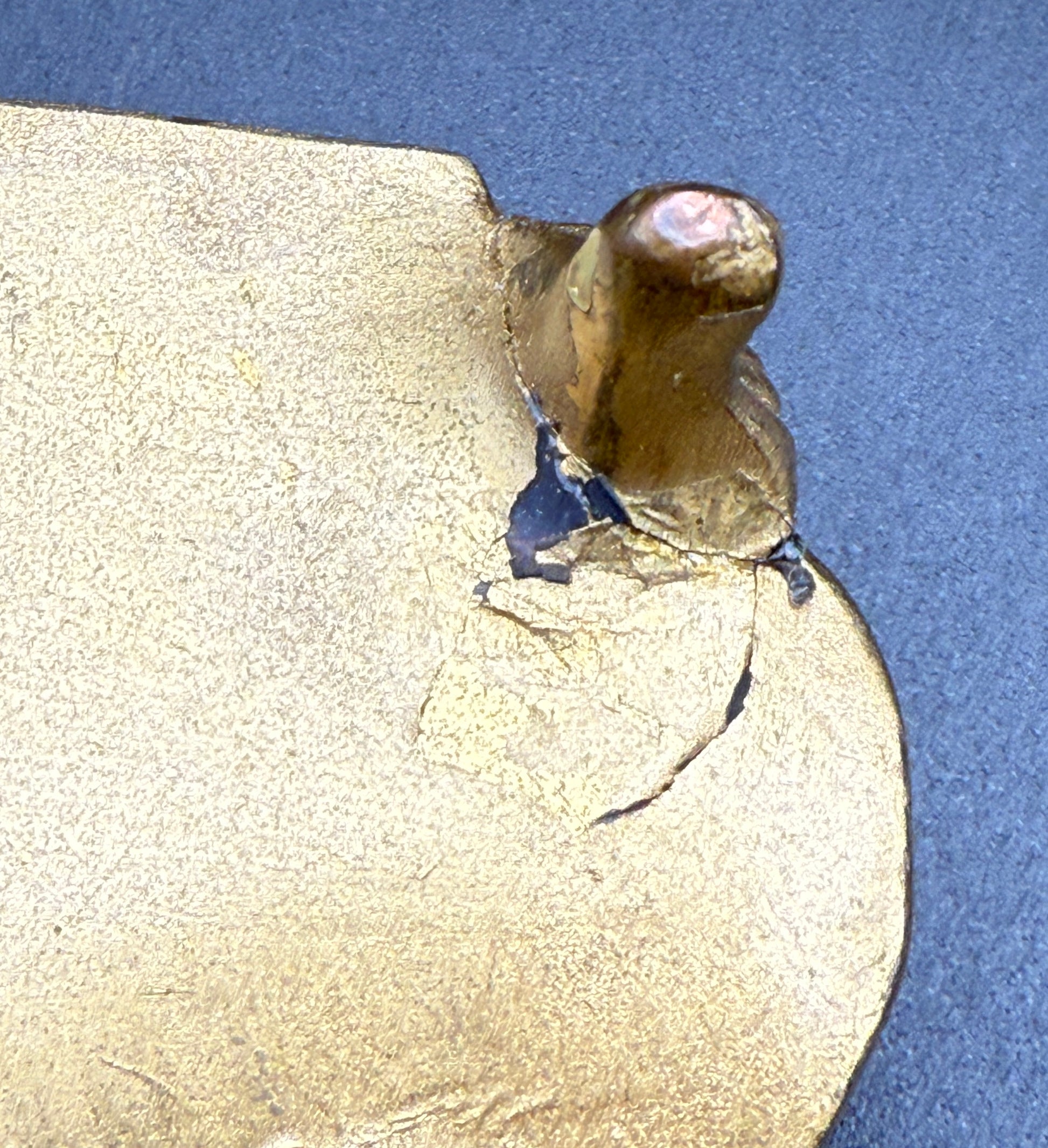 - Condition: Antique condition; age-appropriate wear and gilt loss at base/leg edge; silk lining frayed and could be removed.