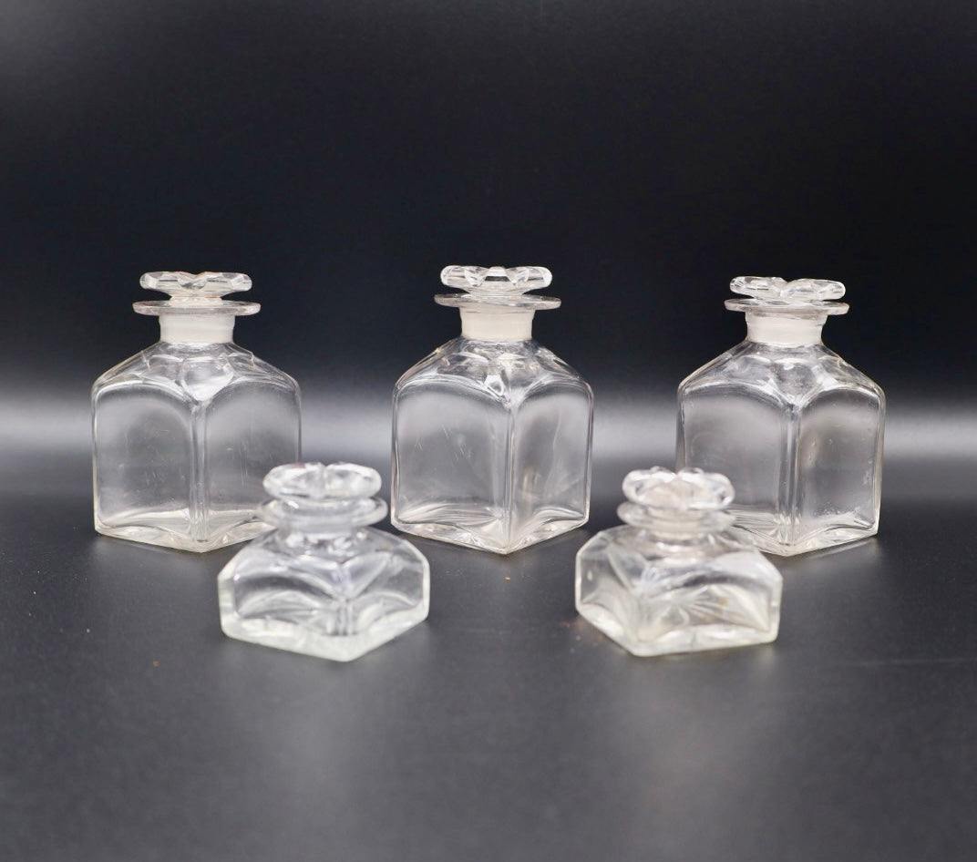 - All glass jars intact; one stopper with minor interior chip