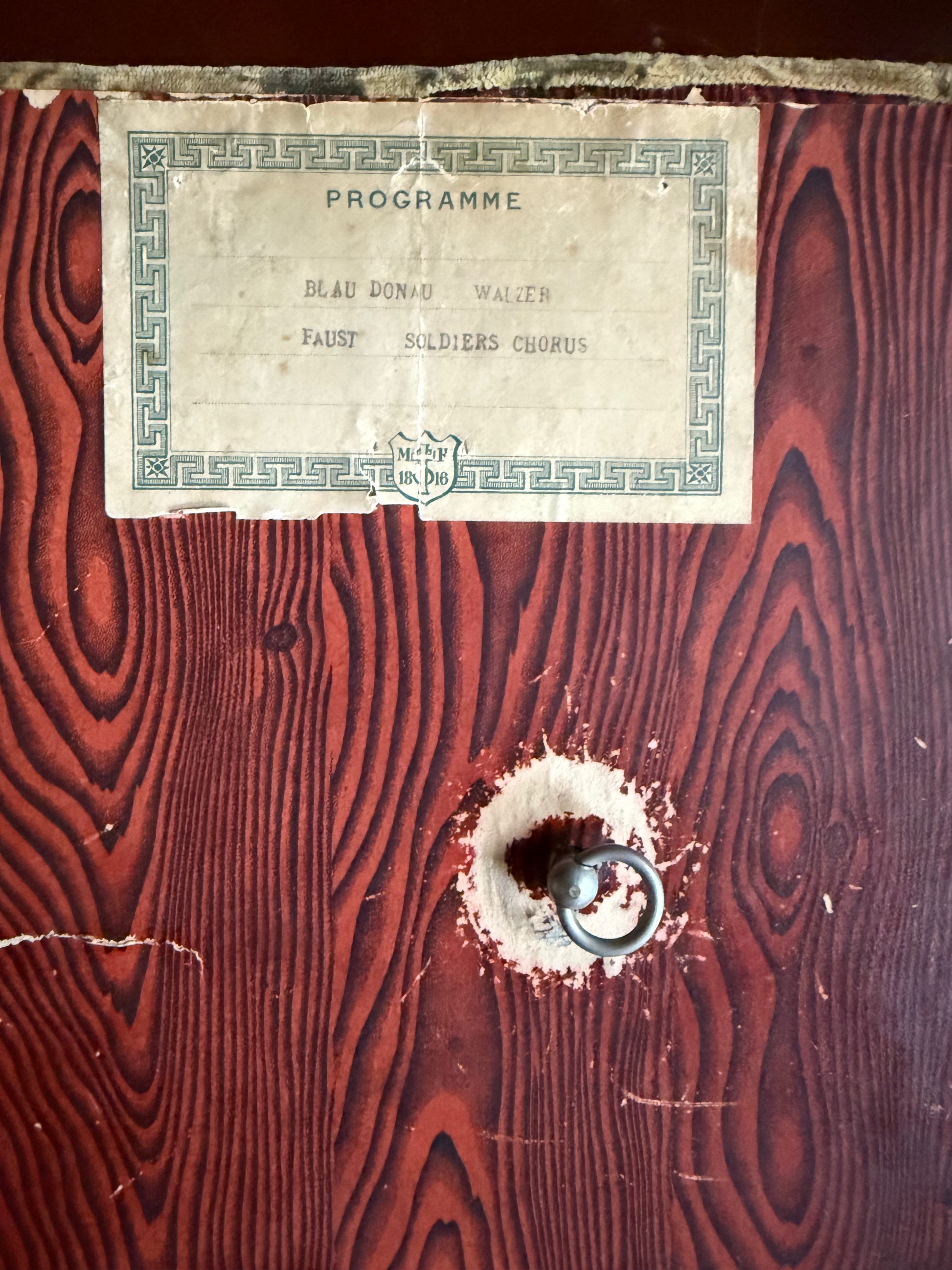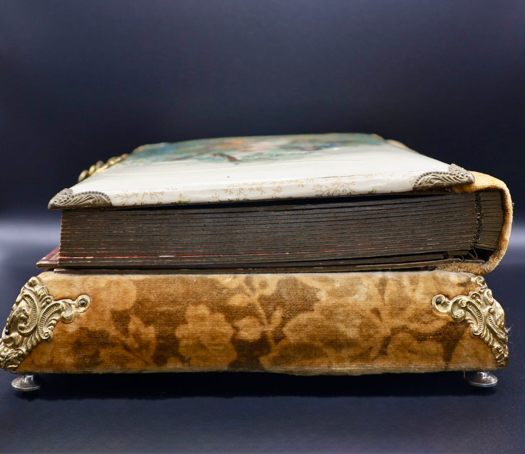 This piece is an early example of mass-market celluloid novelties produced between 1890–1905. They were often given as gifts and used to store letters, photographs, and personal mementos. The elaborate gilt metal mounts and embossed book-spine edging are classic features of the era.