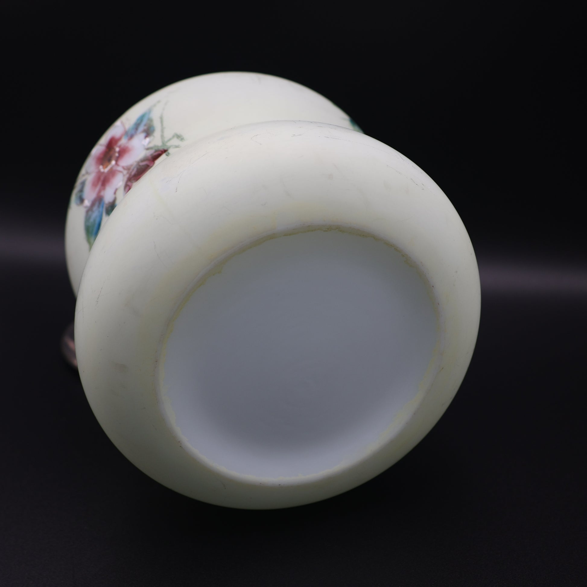 - Condition: No chips or cracks; the artwork remains vibrant, and the enamel flowers are intact. Some age-appropriate wear and surface scratches are visible on the white glass, consistent with its 100+ years of age.