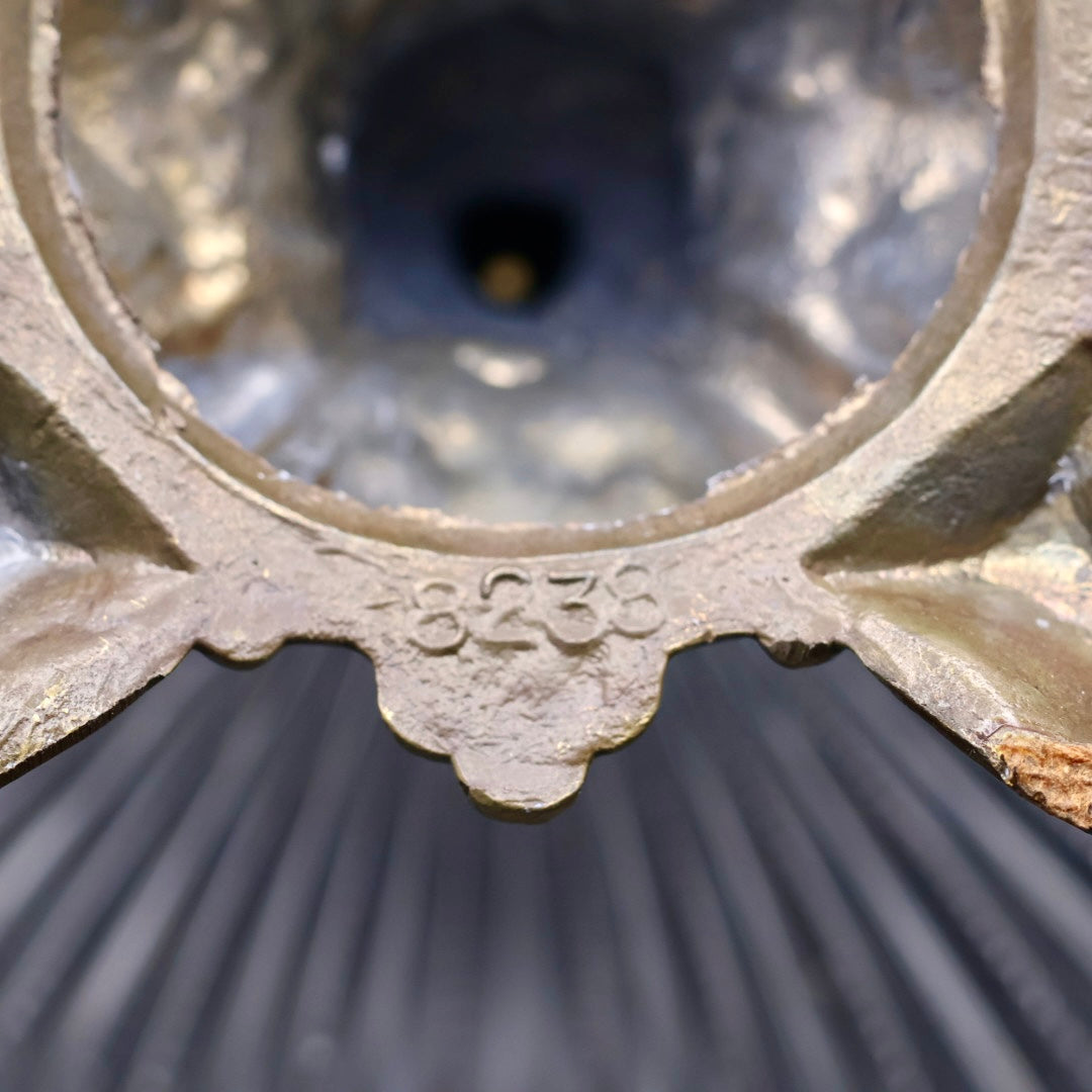 Hollywood Regency–style pedestal stand features a heavy pressed crystal top on an ornate cast brass base with scrolling Rococo details and shell feet. The result is pure old-world drama, perfect for dark romantic interiors, altars, vanities, and haunted holiday tablescapes.
