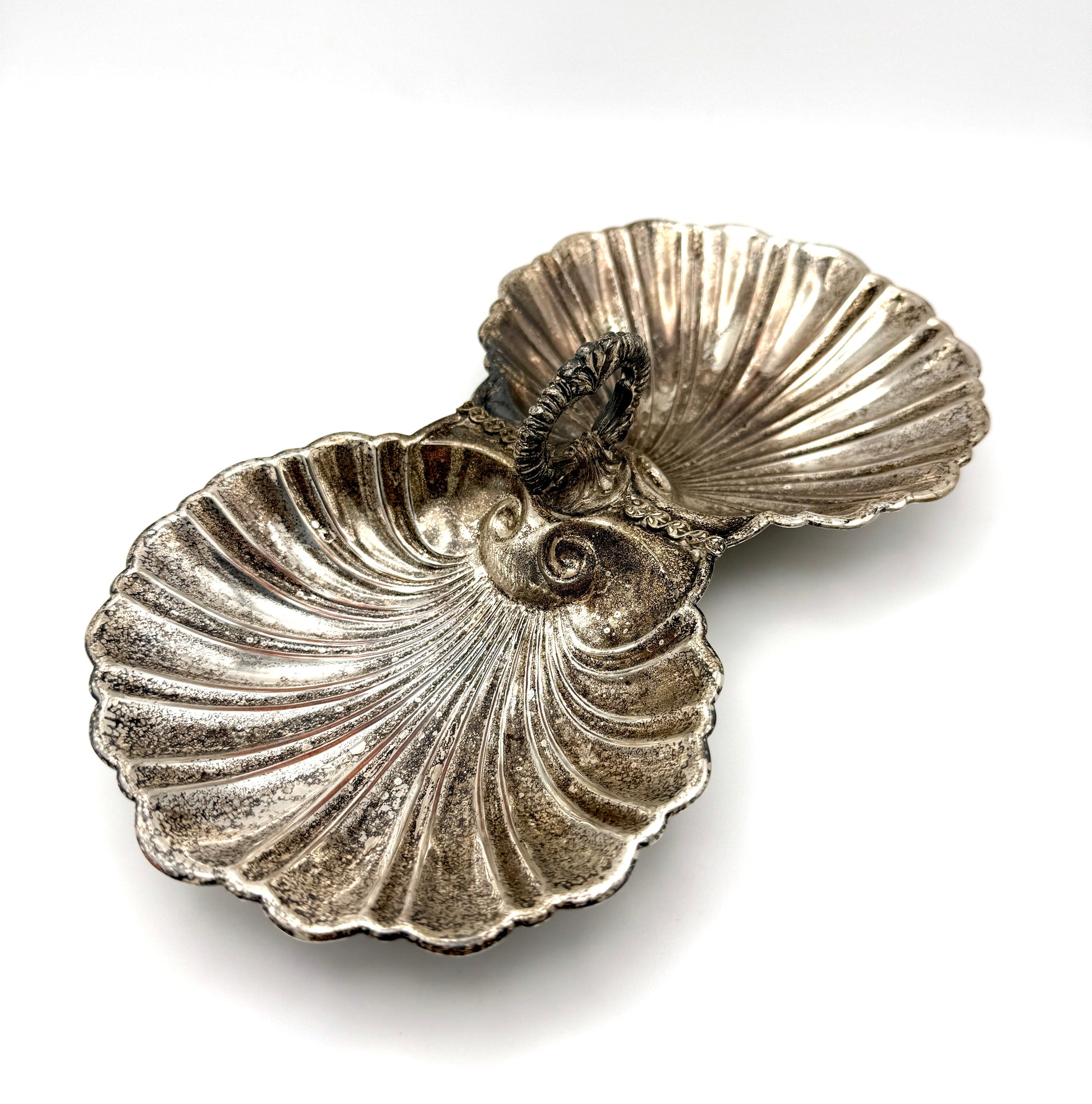 Antique Silverplate Double Shell Serving Dish c. 1930s–1950s