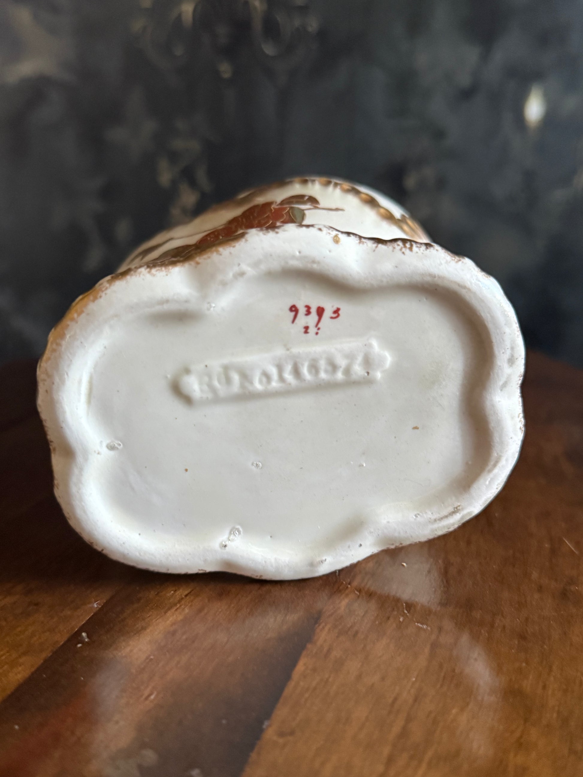 - Material: Porcelain with hand-painted floral and gilt accents
