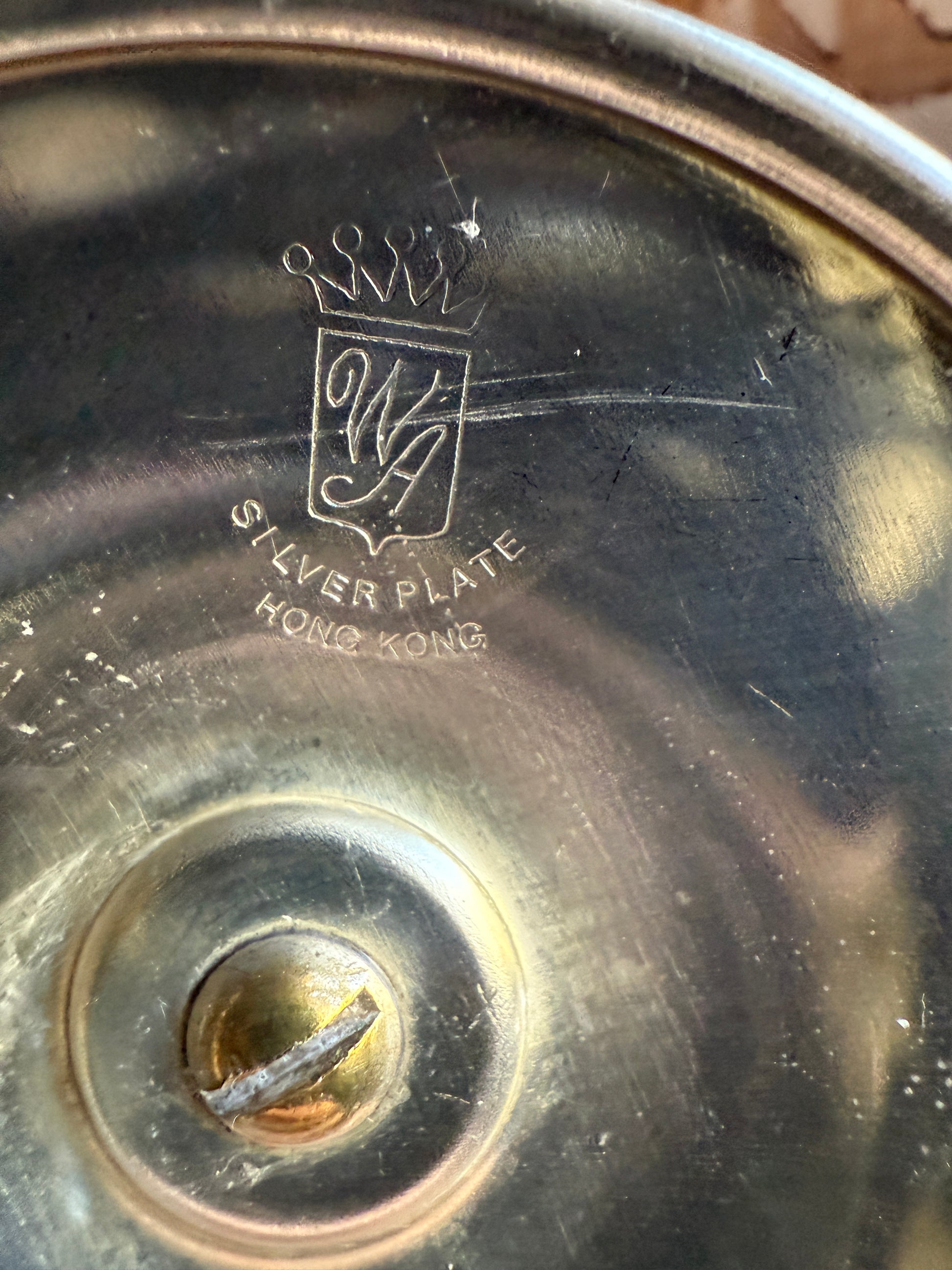 With a modern, minimalist, and highly versatile style this striking pair of tall, silver-plated candlesticks make a perfect gift for candle lovers. Made by Wm. Adams, these mid-century pieces were crafted in Hong Kong during the brand’s later production era. This reflects the transition from Italy to Asia as silverplate manufacturing modernized in the 1960s.